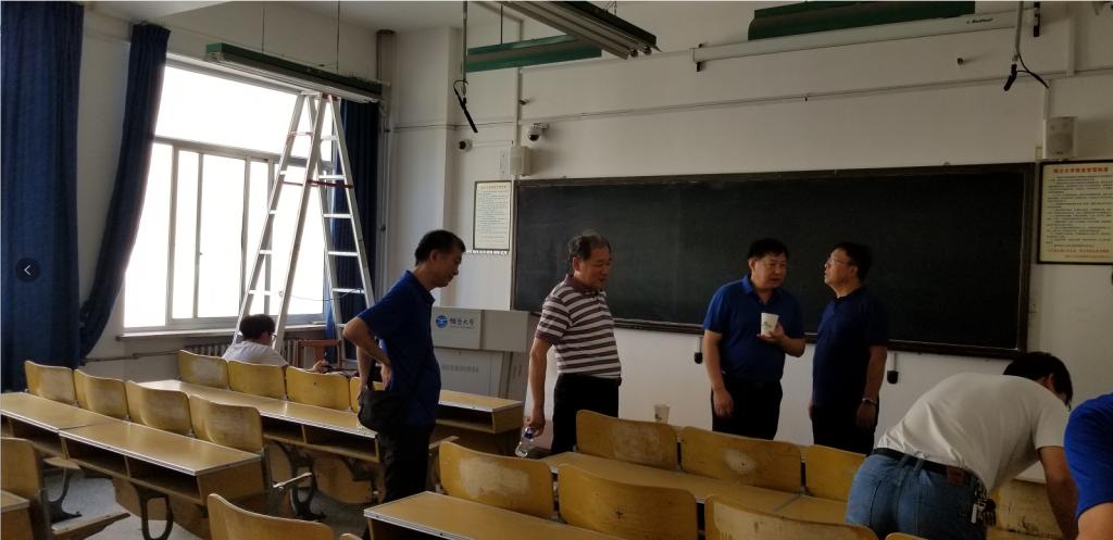 在综合楼、第四教学楼和第五教学楼,校领导详细询问了新学期教学设备运行维护情况,认真听取了相关负责人对开学准备工作的情况汇报,并对多媒体教学保障、后勤服务保障等方面的工作进行了检查和现场指导。