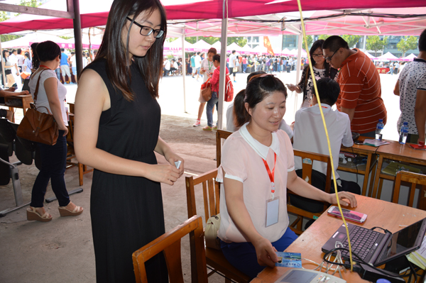 正式迎新开始,网络中心技术部的同志提前到现场,为迎新工作组的每一台电脑联通网络,迎新期间,全程跟进迎新现场,确保迎新网络的顺利运行,一天的工作结束后,他们还要对网络设备进行检查和维护。作为新生报到的重要一环,校园卡务管理部的同志们耐心周到的为新生制作、开通校园卡,并积极协同财务部门核对缴费中出现的种种问题。